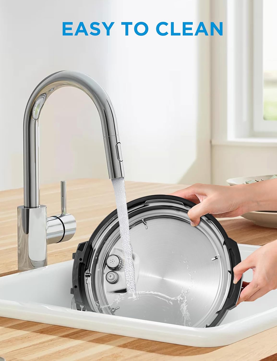 - Smart Cooking Programs: With multiple cooking modes, you can easily cook the perfect breakfast, lunch, or dinner. The one-touch cooking feature and customizable smart programs make cooking a breeze, even for novice home chefs, and the large 6-quart capacity makes it easy to cook enough food for a family of 6.