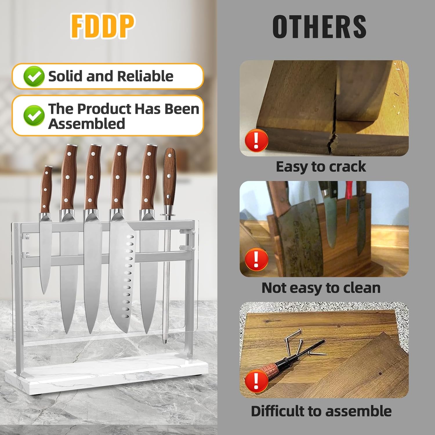- 【Transparent Acrylic Protection: Safety and Convenience Combined】 The transparent acrylic protective layer adds an extra level of safety and peace of mind. It prevents knives from slipping and shields the blades from damage. The clear design allows for easy visibility and access, ensuring convenient use while reducing the risk of accidental cuts or children mishandling the knives.