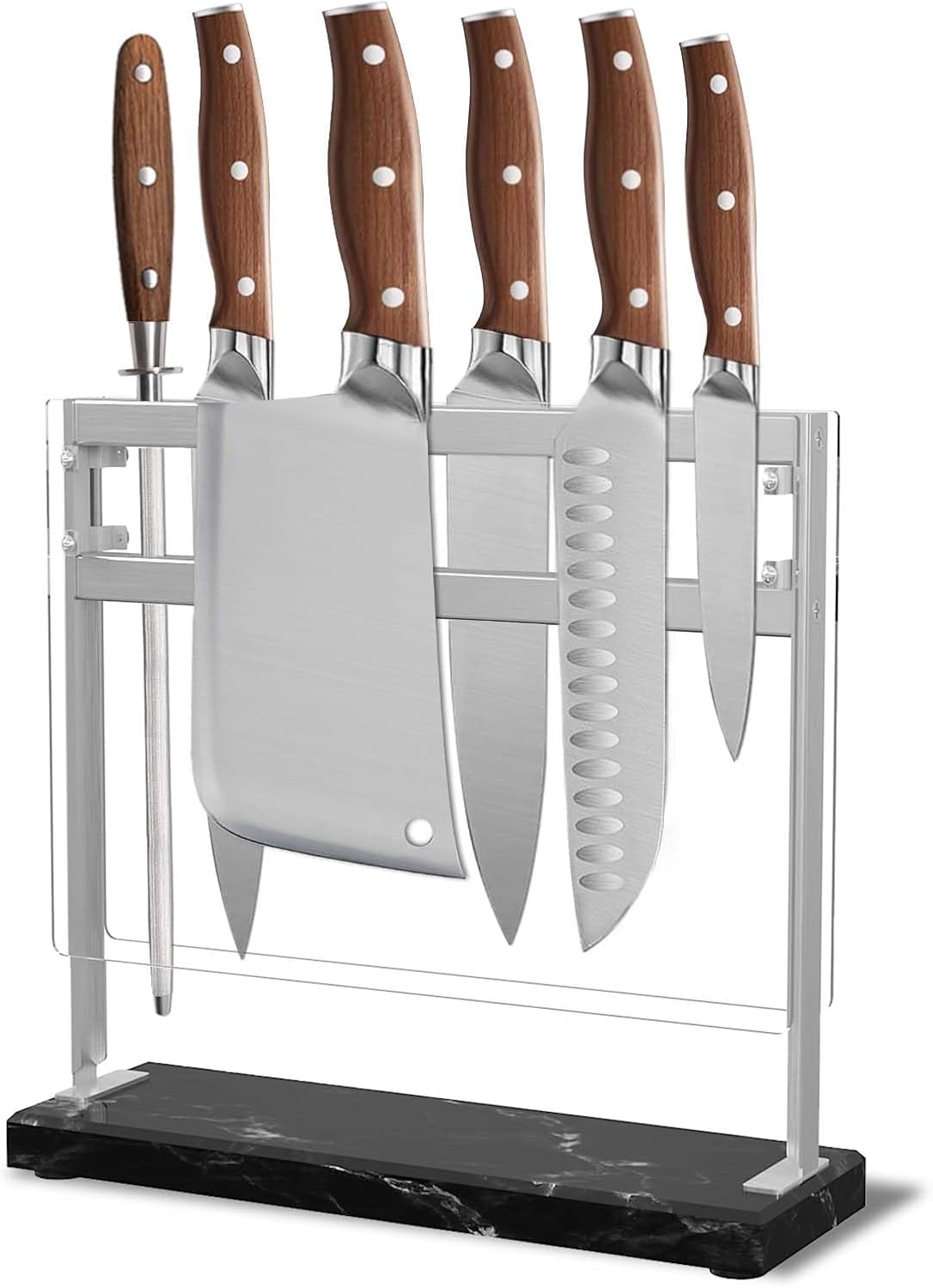 - 【Transparent Acrylic Protection: Safety and Convenience Combined】 The transparent acrylic protective layer adds an extra level of safety and peace of mind. It prevents knives from slipping and shields the blades from damage. The clear design allows for easy visibility and access, ensuring convenient use while reducing the risk of accidental cuts or children mishandling the knives.