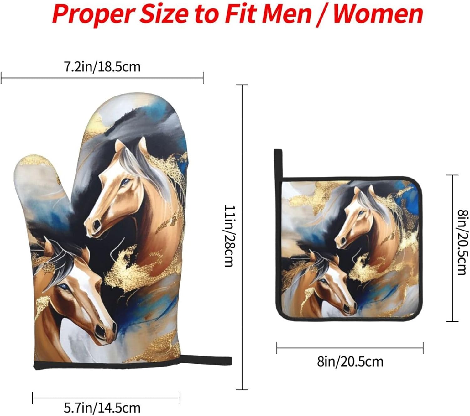 Horse Oven Mitts and Pot Holders Sets of 3 Modern Kitchen Decor Heat Resistant Hot Pads Funny Oven Gloves for Cooking Grilling Baking