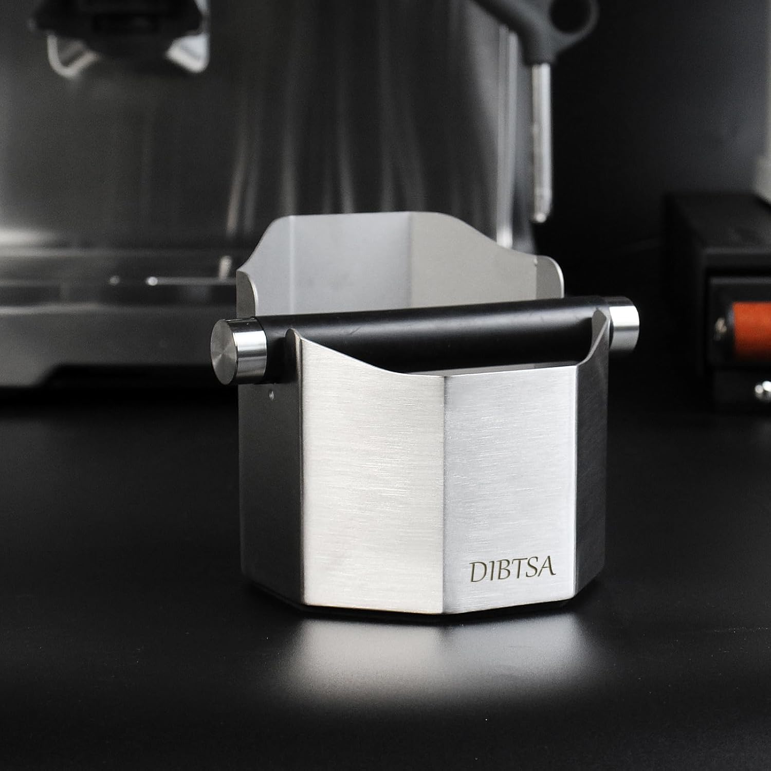 DIBTSA Espresso Knock Box, with Removable Knock Bar and Non-Slip Rubber Base,Coffee Bar Accessories, Stainless Steel, Silver, Large
