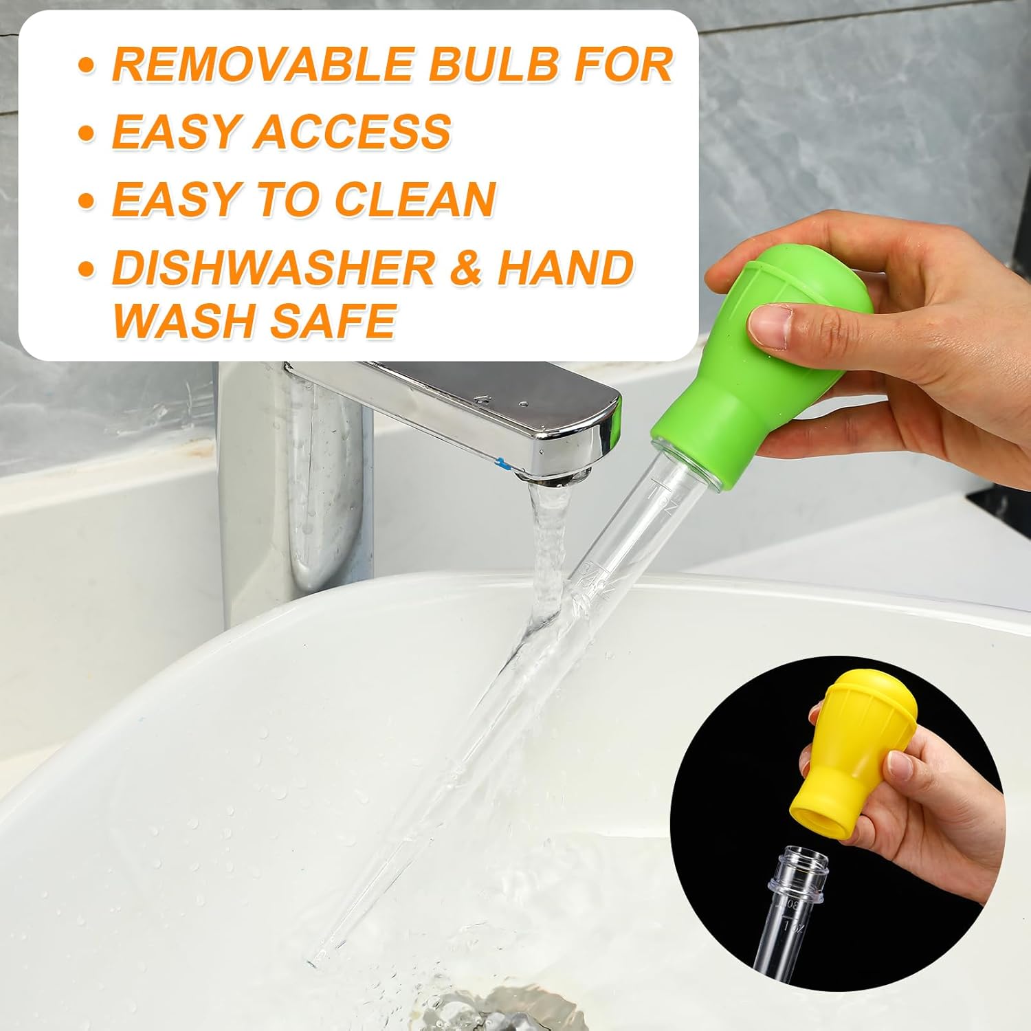- What you get: our turkey baster set contains 8 turkey basters for cooking in 4 colors including blue, red, yellow, green, 2 pieces silicon basting brush and 4 pieces cleaning brush, keeping your hands away from heat