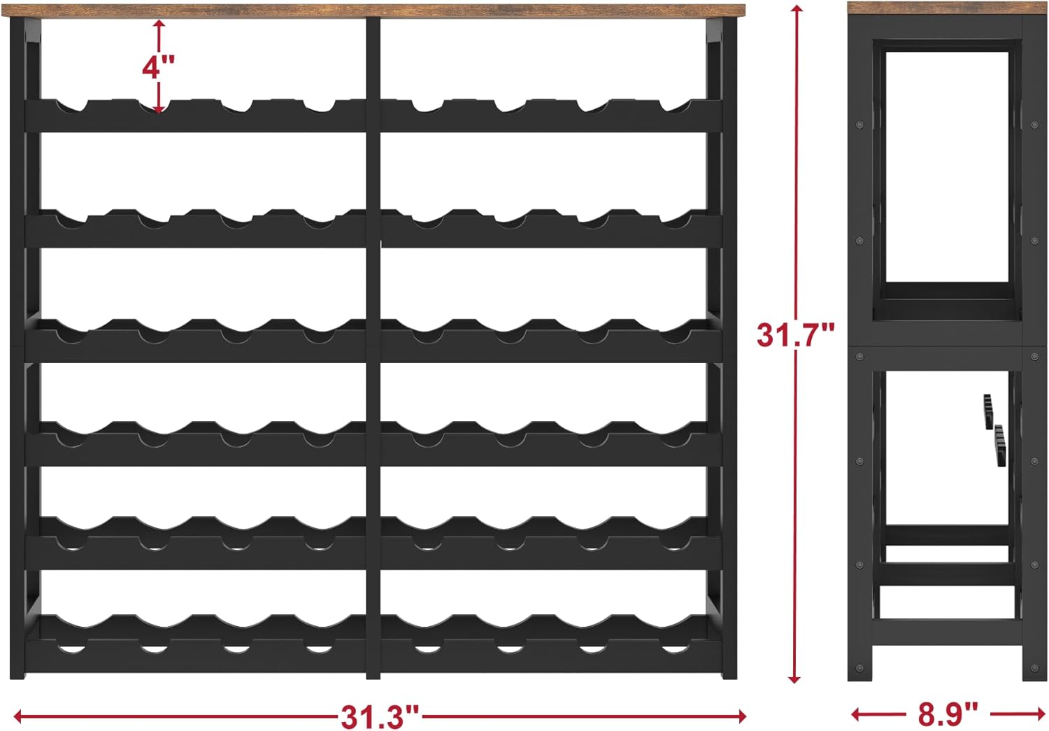 - ๐๐๐ซ๐ ๐ ๐๐๐ฉ๐๐๐ข๐ญ๐ฒ: Measuring 9.5"D x 16.1"L x 32.3"H and with 4 bottles on each shelf, this elegant 6-tier bamboo wine rack effortlessly accommodates a total of 24 standard wine bottles. Ideal for organizing and storing both white and red wines efficiently.