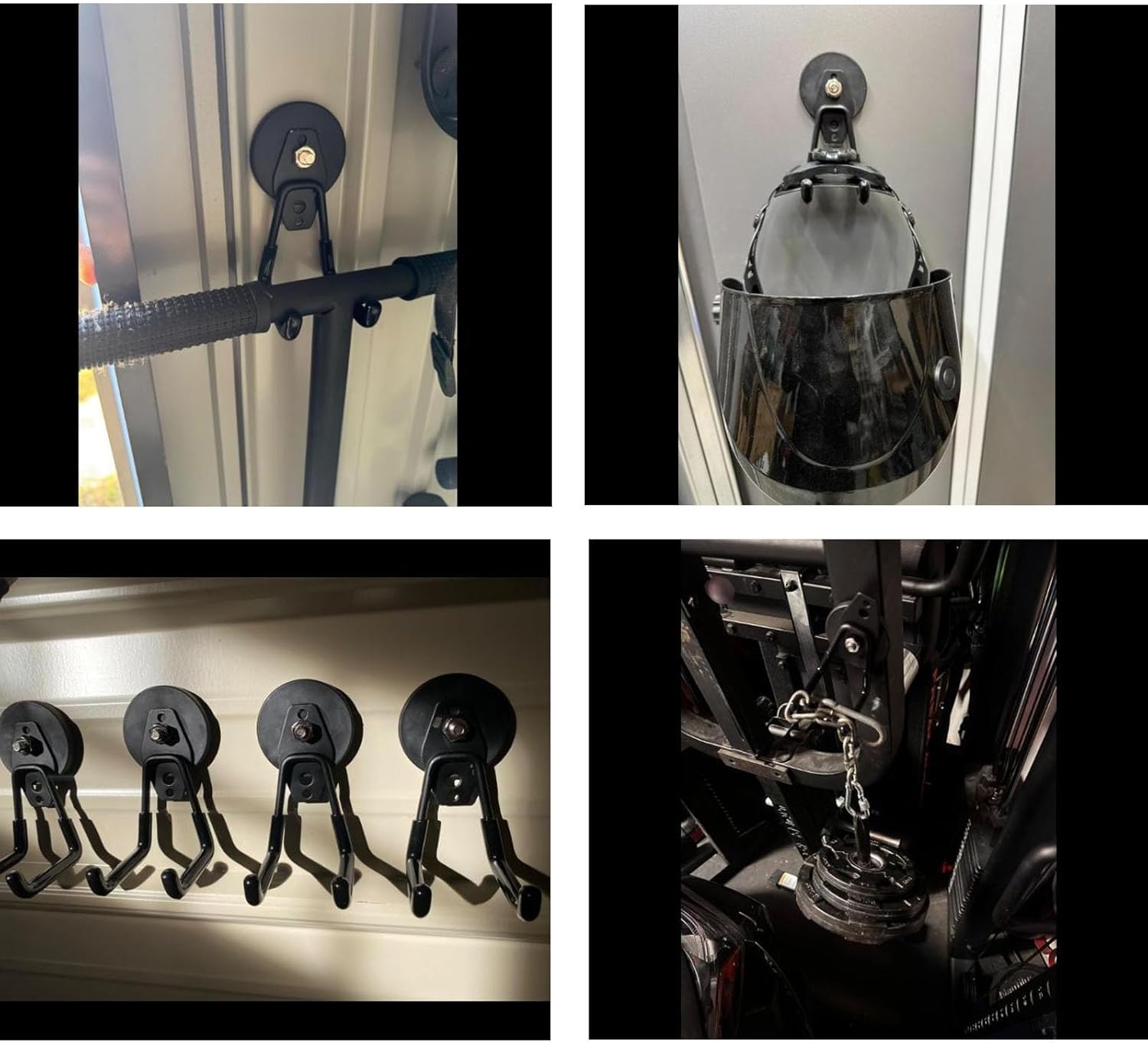 - 🧲[Large Storage Magnetic Hooks]:These magnetic hooks includes 4 (2.6inch) strong magnet base with threaded bar, spacers,nuts and 4 PVC coated medium L hooks. We tested that our medium L magnetic hook can hold any kind of EV charger,more than one gallon bottled water, any kind of garage tool,drill, toolbox etc.
