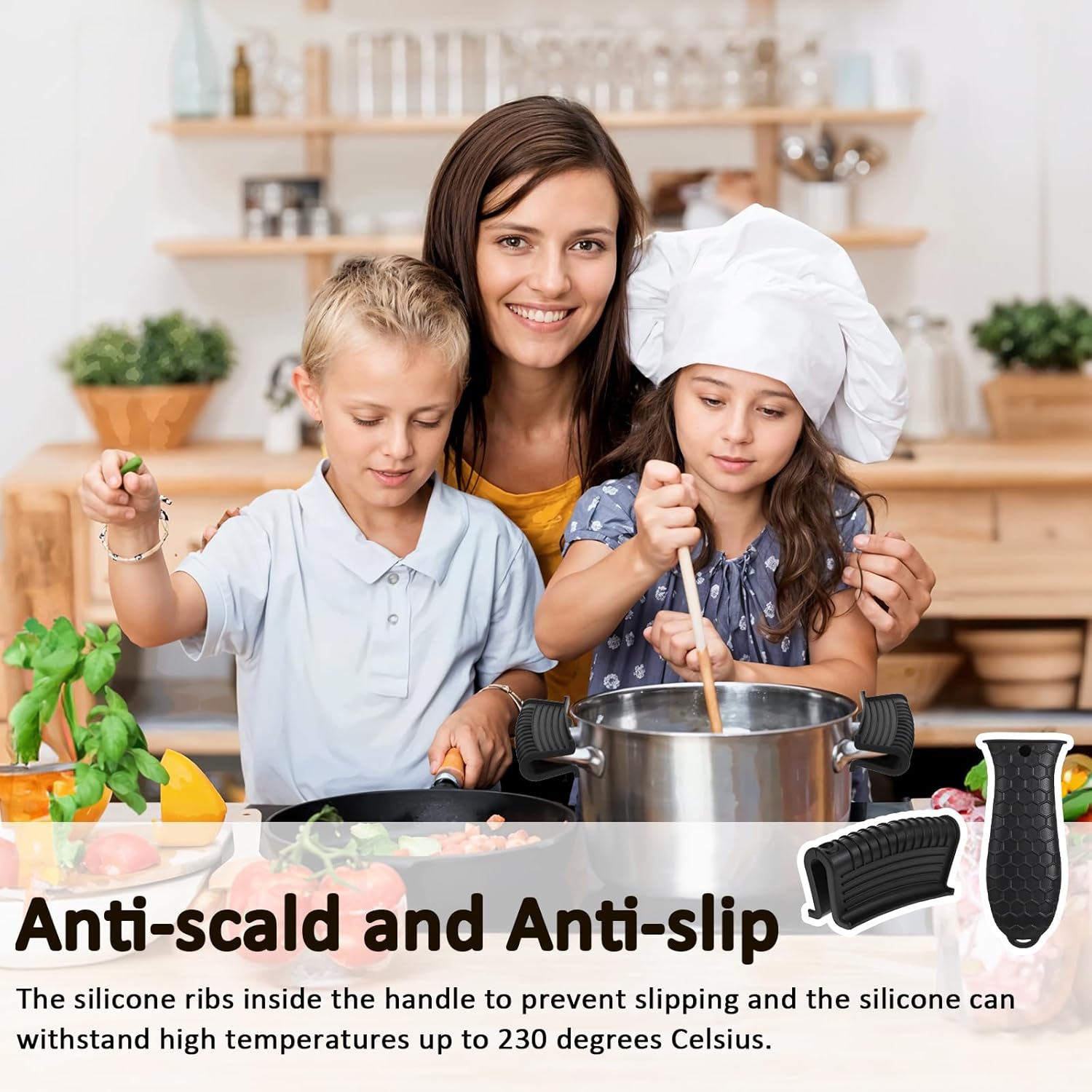 - Package Quantity: Each pack includes 4 silicone hot handle covers and 4 silicone assist handle grips in black, providing enough for daily use, replacement, and sharing.