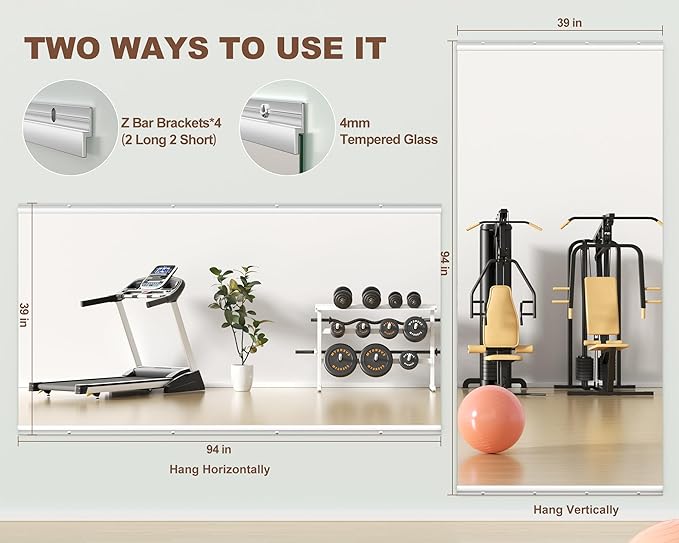 • ๐Ÿ’Ž[Upgrade-Tempered Glass]-Home Gym Mirror uses 0.16-inch thick tempered glass, which is shatterproof and explosion-proof.