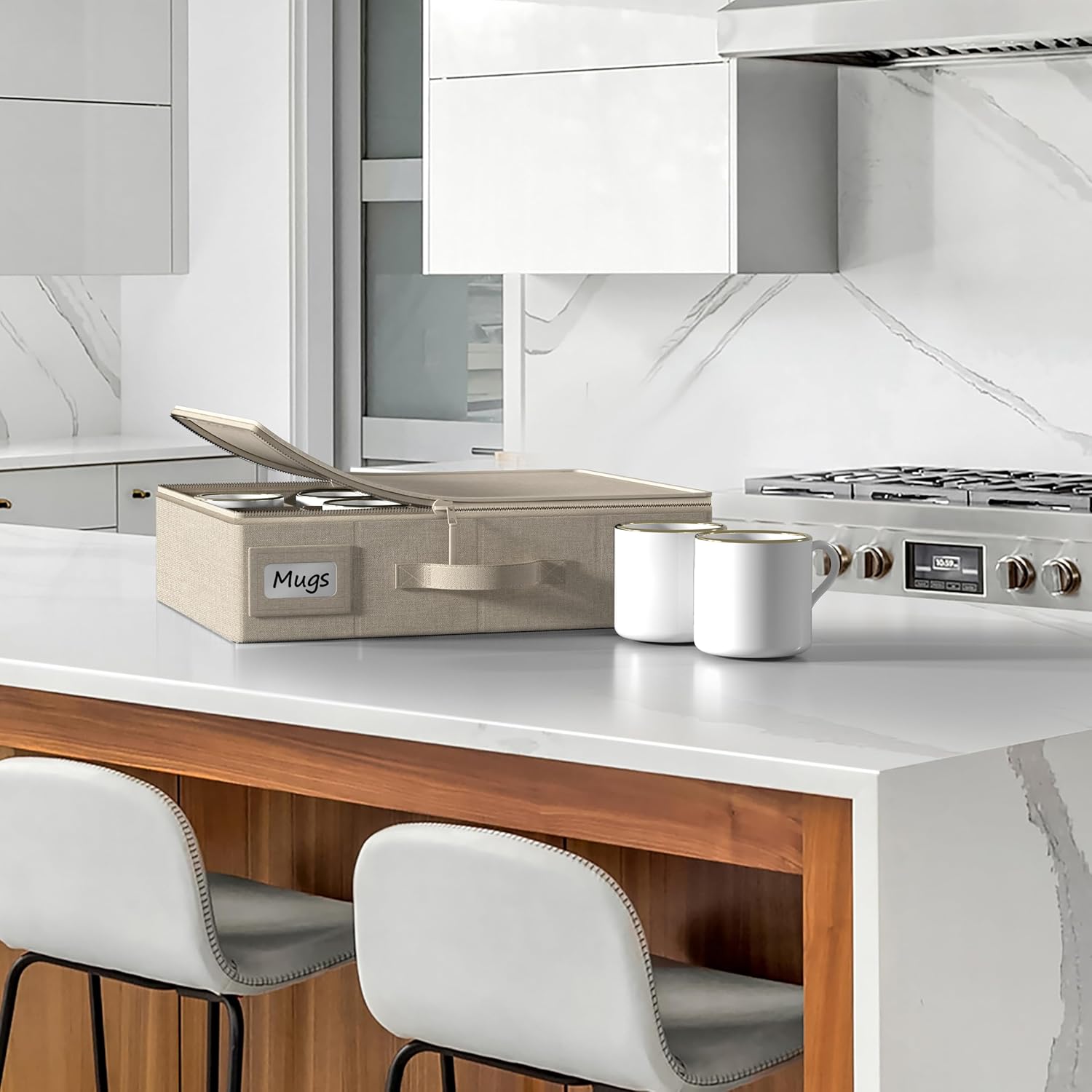 - Coffee Mug and Glass Organizer Storage: Our coffee mug storage box with dividers is designed for coffee enthusiasts, offering a convenient solution for organizing and protecting your coffee mugs and glassware - Holds up to 12 of your favorite mugs - Features label windows, handles, and dividers