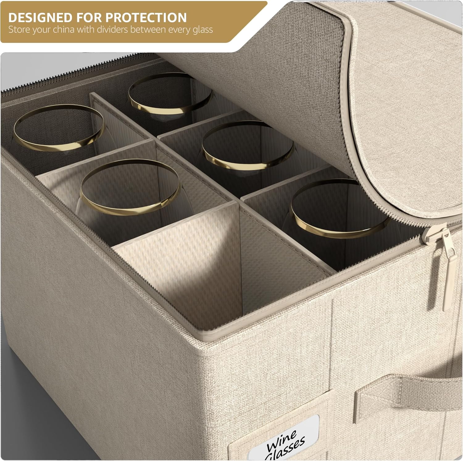 - Sorbus China Stemware Storage Case (Beige): This wine glass storage box with dividers helps keep cherished stemware in mint condition, dust-free, and ready to entertain - Wine box fits 12 wine glasses