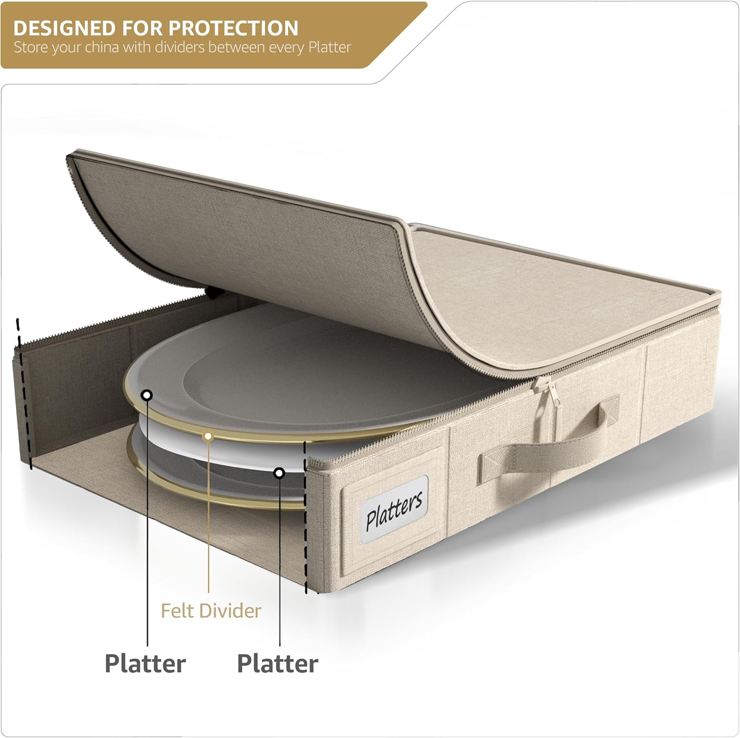 - Efficient Organization: Utilize the platter storage containers to keep your delicate dishware neatly arranged, preventing scratches and chips - Perfect for home cabinets or attic storage, our platter storage case features a thick hard shell cover, ensuring your dinnerware stays secure when not in use