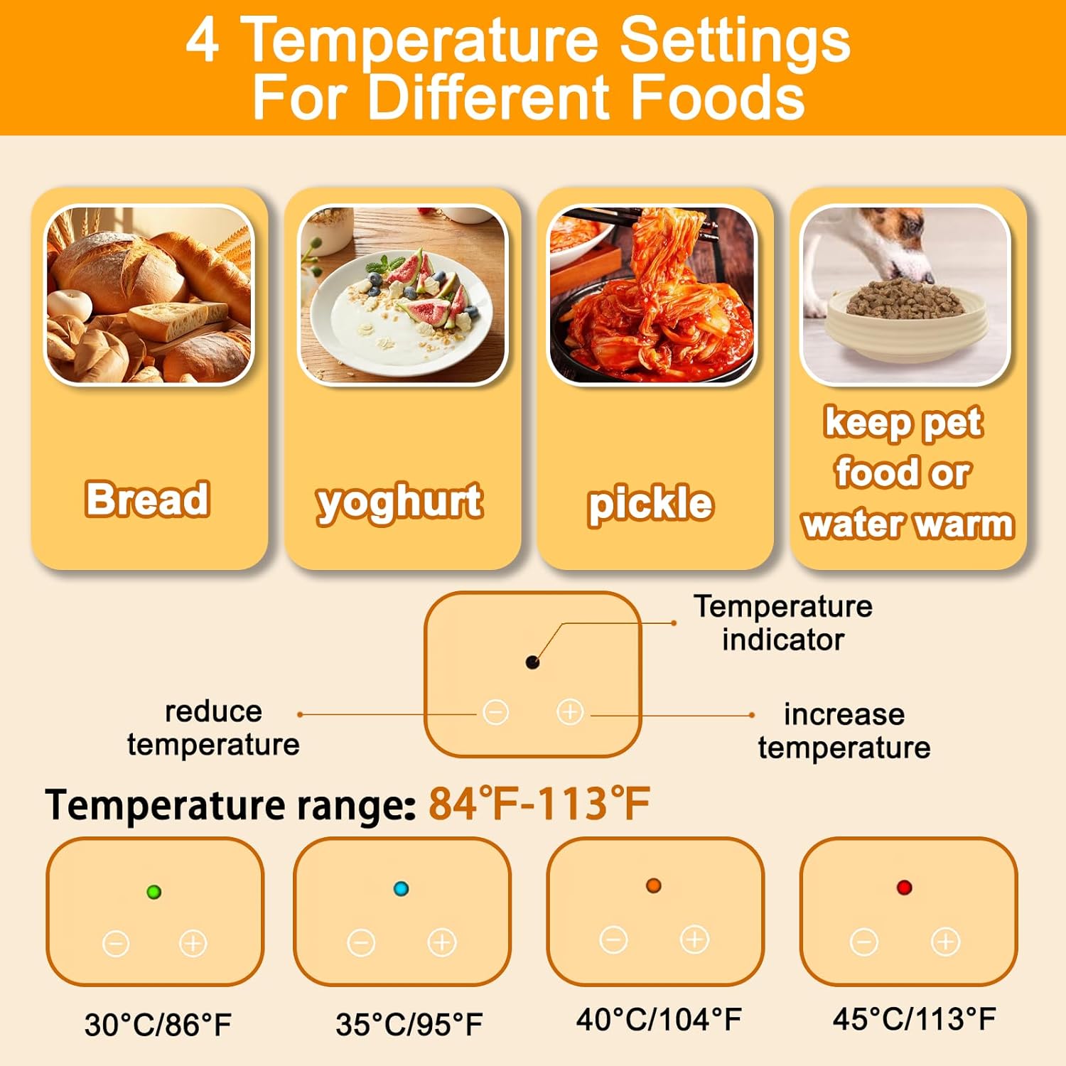 - Multiple Uses: Our Heating Bread Proofing Basket is not only suitable for fermenting dough, but also can be used to make yogurt, ferment wine, chocolate, cheese, meat thawing, heating mask, pet food thermostat, practical kitchen gadget.