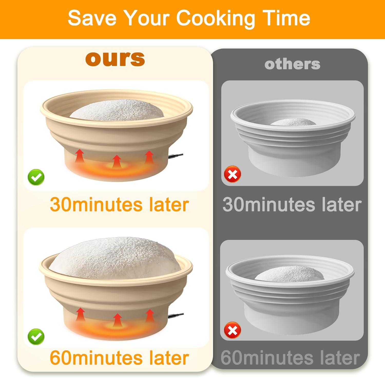 - Upgrade Graphene-Heated Function: Compared to traditional proofing baskets, this graphene-heated bread proofing basket saves much time, which allow experience the joy of baking bread at your convenience. Even in the cold winter, achieve complete fermentation in just 30-60 minutes, say goodbye to long waiting times and hello to freshly baked bread whenever you desire!