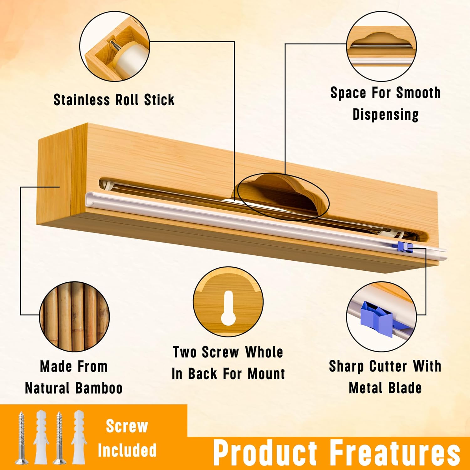 - ECO-FRIENDLY: Constructed from high-quality bamboo, this foil dispenser offers an eco-conscious alternative to plastic. The bamboo wrap organizer is versatile—depending on your space requirements, you can mount it on the wall or use it in a drawer or countertop