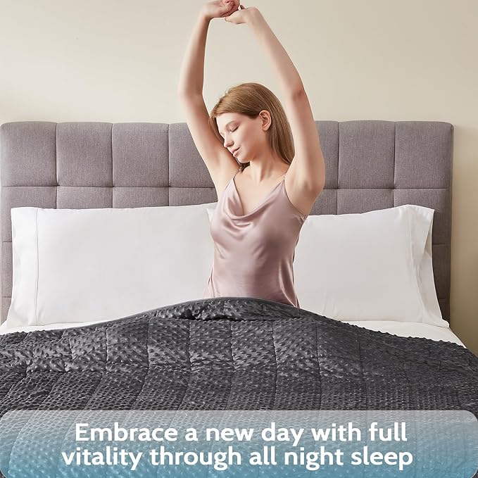 • PREMIUM MATERIAL: The weighted blanket is made of soft breathable minky material and filled with 0.8-1 mm non-toxic hypo-allergenic glass beads, suitable for all seasons. This minky dots weighted blanket could providing a cozy and warm sensation in the winter. Our minky dots weighted blankets are designed with bubble dots to give you an extraordinary tactile experience with their raised dots for added comfort