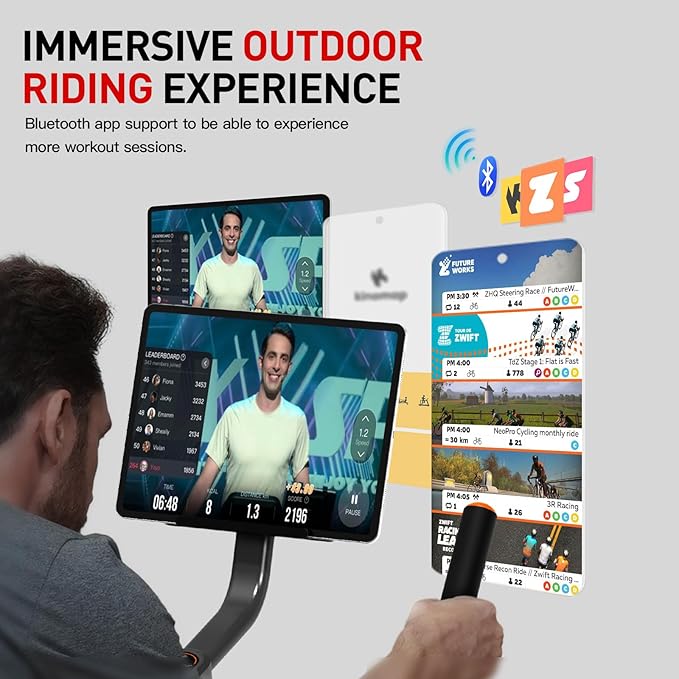 • Support Fitness APP: With a built-in sensor,this stationary bike support multiple fitness app,which can track your real-time sports data,such as time,speed,RPM,distance and calorie. These fitness apps offer a variety of exercise courses, enabling you to personalize your workout plan and add entertainment to your fitness routine