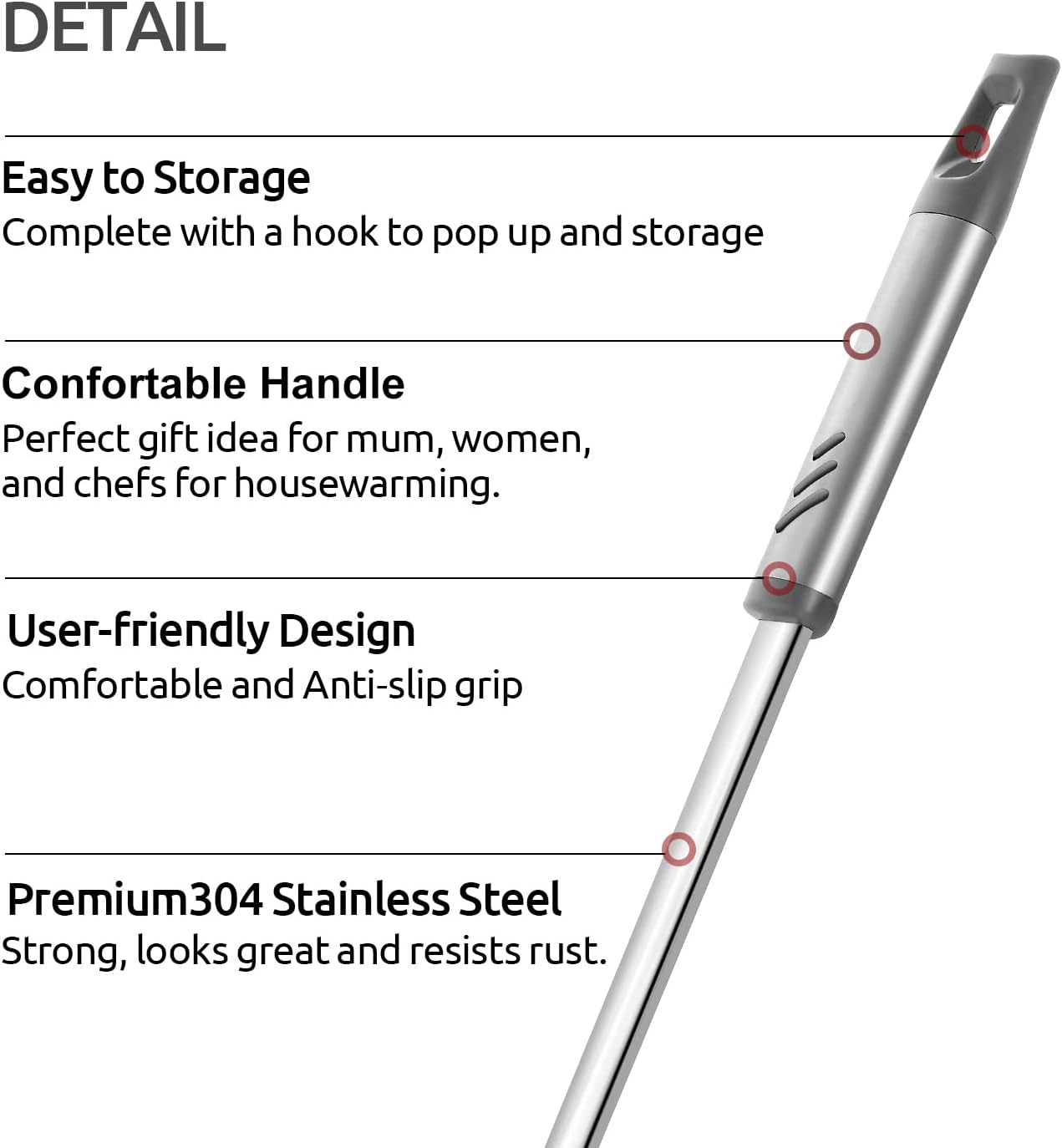 - 【Dishwasher Safe, Easy to Store】 After finish using this pasta serving spoon, you could clean it with the dishwasher or by hand. The built-in hanging hole in the handle can be used for convenient storage