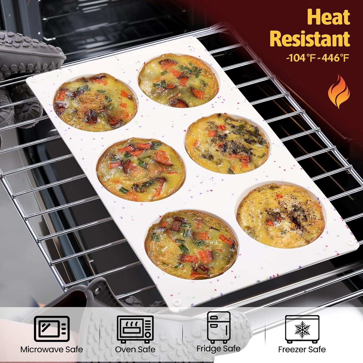- Food Grade Silicone: High heat resistant range:-104 to 446 degrees Fahrenheit. It's suitable for use in the oven, microwave, dishwasher, refrigerator and freezer. It's suitable for making a variety of baking treats
