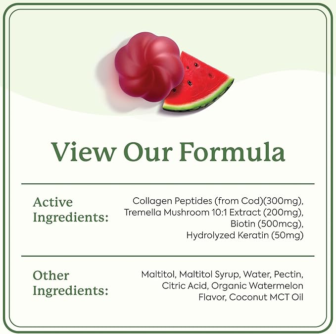 Plant People WonderBeauty Hair, Skin & Nails Rejuvenation Gummies with Tremella Mushroom, Marine Collagen Peptides, Keratin, & Biotin – Watermelon Flavor, 60 Gummies