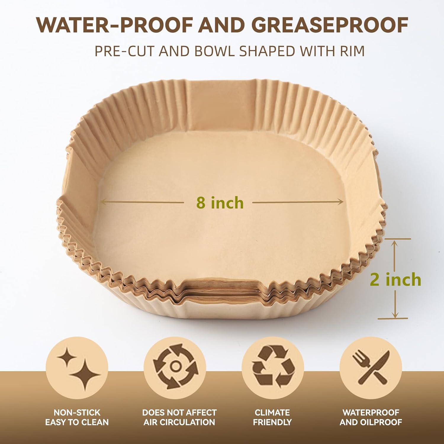 - Safe and Durable: Made of food grade materials that are waterproof, oil resistant, and non stick, ensuring that your meals remain healthy and delicious. With its heat resistance, these liners can withstand the high temperature of 220 ° C commonly used in air frying, allowing you to cook with peace of mind every time.