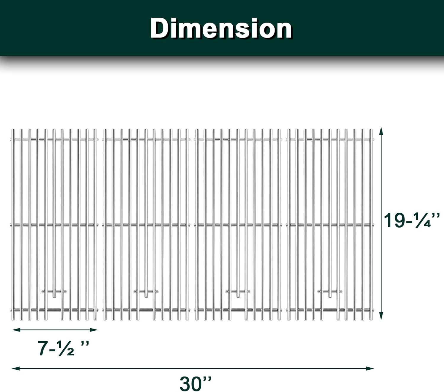 - 【Dimension and Package】 7 1/2’’ x 19 1/4’’ per bull grill grates, 30’’ x 19 1/4’’ for 4 Pcs bull bbq grill grates, total 4 Pcs in 1 Pack bull grill grates replacement bull grill replacement parts (Please make sure the bull angus grates size and package is perfectly fit your bull grill parts)