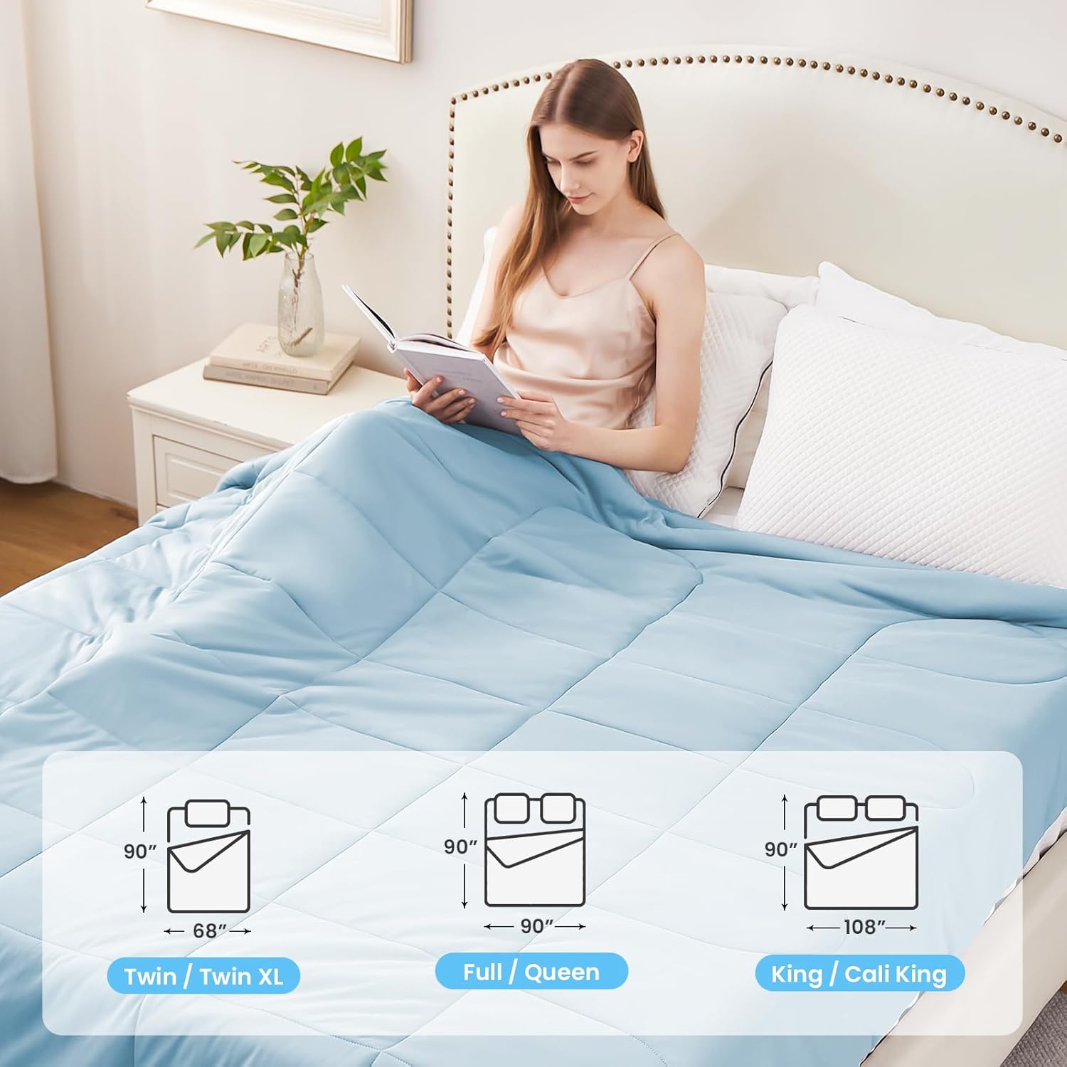 HYLEORY Cooling Comforter Twin Size - Summer Cooling Blanket for Hot Sleepers/Night Sweats, Double-Sided Cold Touch Silky Ice Comforters, Breathable Lightweight Beddings, Cool Blue, 68"x90"