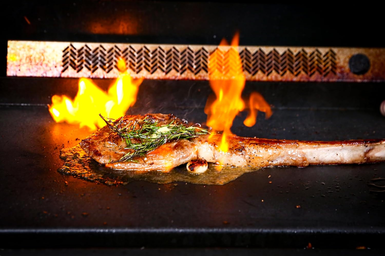 - 【Smart Design & Efficient Cooking】 The high-bar sides prevent food splashes and grease stains, while the sidewalls are ideal for flipping and turning food, keeping everything contained. The griddle's ventilation holes ensure even heat distribution, allowing for efficient cooking. Whether you're making breakfast pancakes or grilling steaks, this griddle ensures a flawless cooking experience