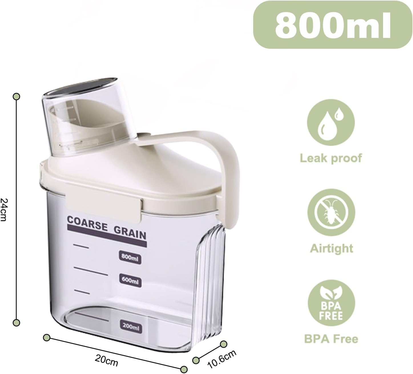 1 PCS Airtight Dry Food Storage Containers, Pantry Organizers and Storage Container with Pouring Spout Measuring Cup, BPA Free, Plastic Clear Container for Rice Nuts Beans Snacks, 29OZ