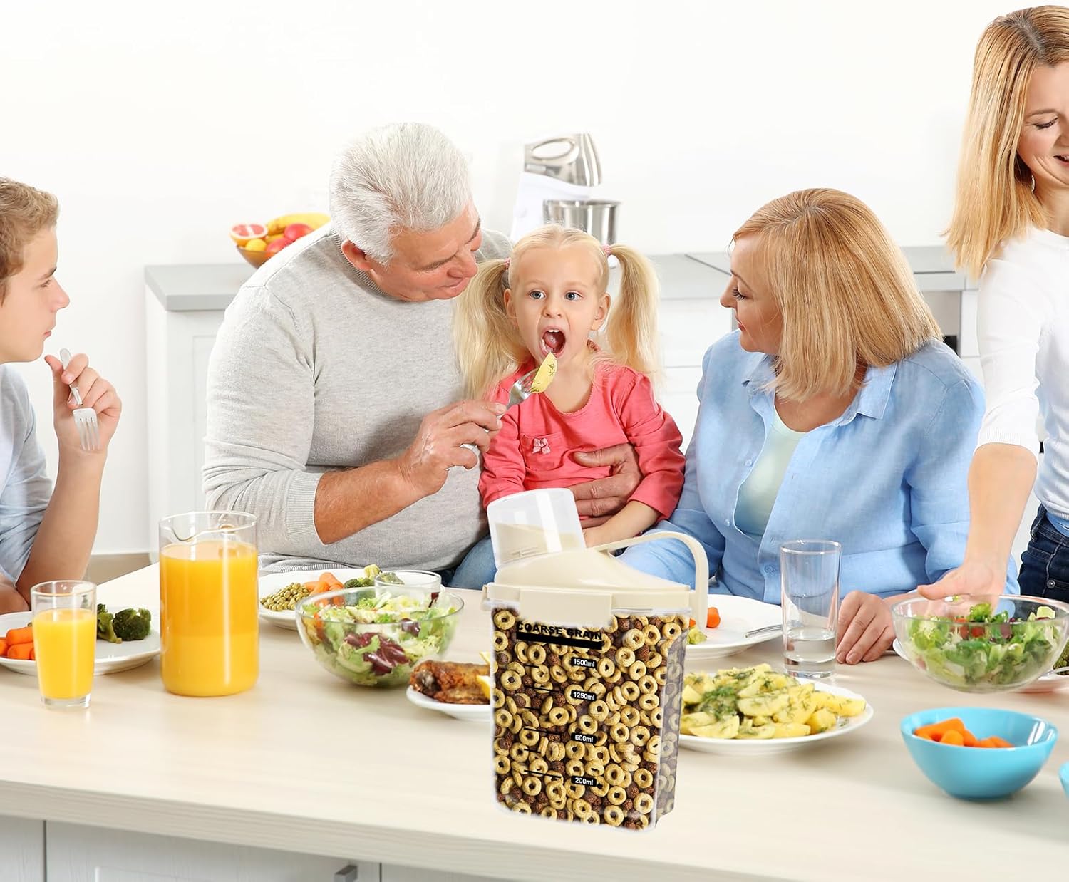 - Airtight Seal: Featuring 2 silicone rings and 3 side locks, our Airtight Cereal Dispenser ensures a reliable seal. Keep your dry products like rice, cereals, pastas, snacks, and pet food fresh and free from moisture. Enjoy crisp and flavorful food for extended periods.