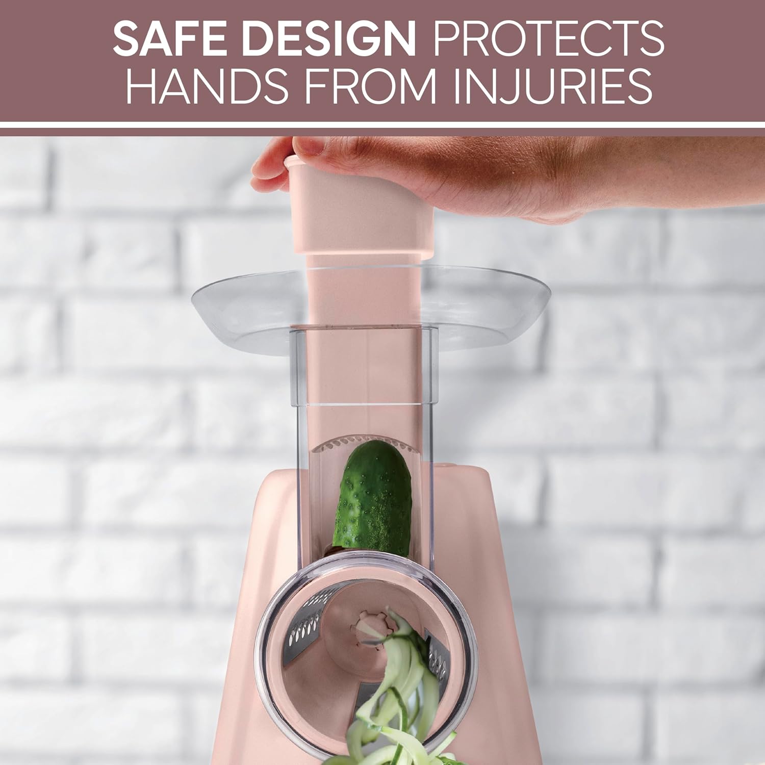 COOK WITH COLOR 5-in-1 Electric Slicer, 150W Food Prep Machine – Cheese Shredder, Fine & Coarse Graters, Potato Grater, Vegetable Slicer, Fruit, Salad Shooter, Compact Design For Bowl Prep, Blush