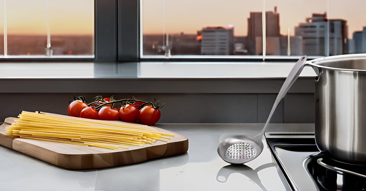 - COMFORTABLE SIZE- This stainless steel skimmer is 13.9in long with a long handle, ergonomically designed to allow you to easily scoop food from hot liquids and strain liquids from food, made of matte brushed finish for durability, not easy to leave scratches, always as good as new.