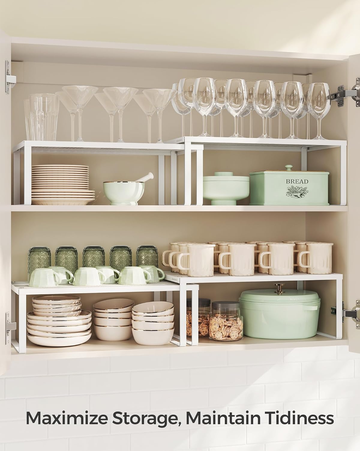 SONGMICS Spice Racks, Set of 2 Metal Cabinet Shelf Organizers, Countertop Organizers, Shelf Risers, Stackable, Expandable, White UKCS401W01