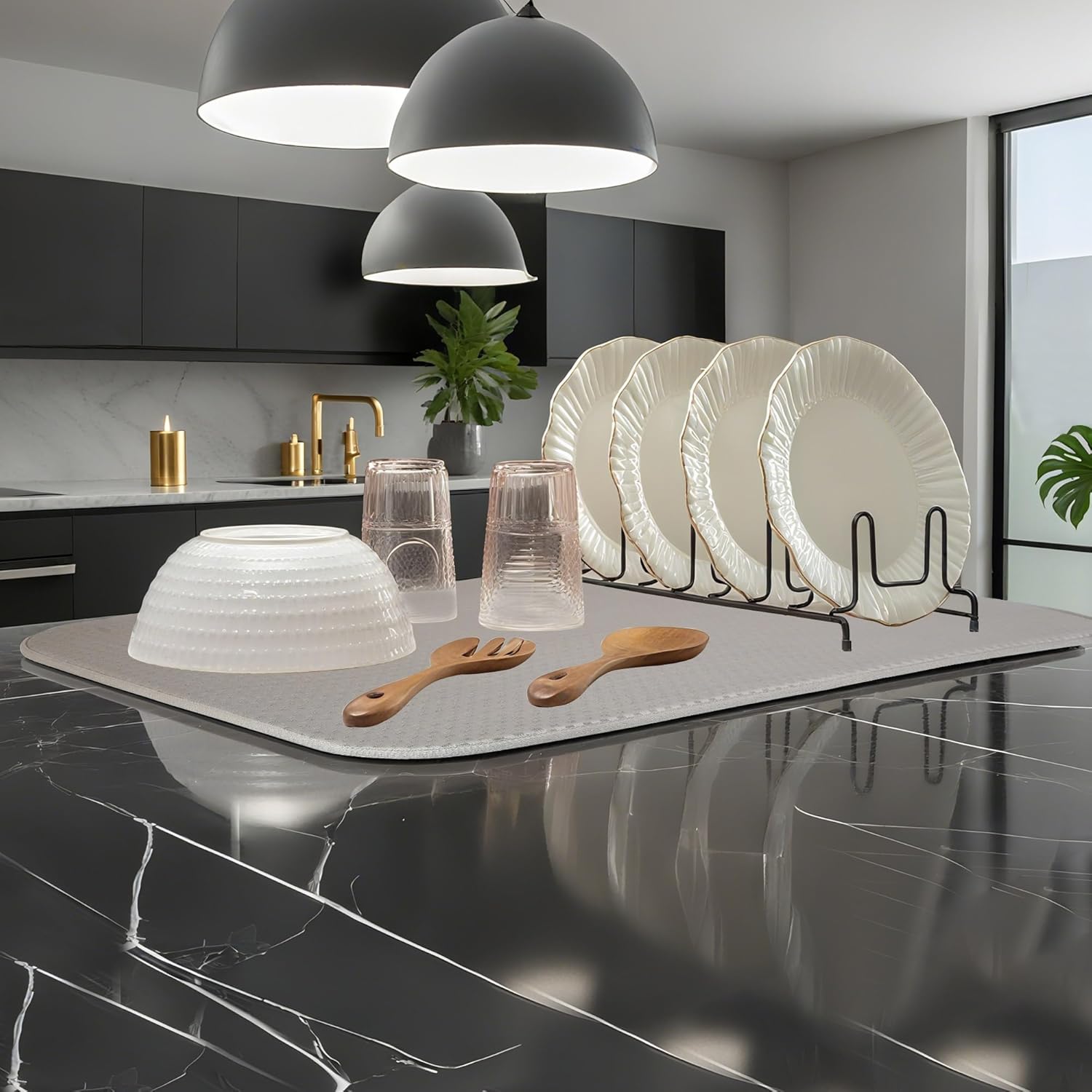 - Non‑Slip, Hand‑Washable & Low‑Maintenance: Each drying matt kitchen counter mat features a secure, non-slip grip to stay put under a fully loaded dish rack mat. When it’s time to clean, simply hand-wash this dish drying mat with mild soap—easy to rinse, air-dry, and ready for repeated use