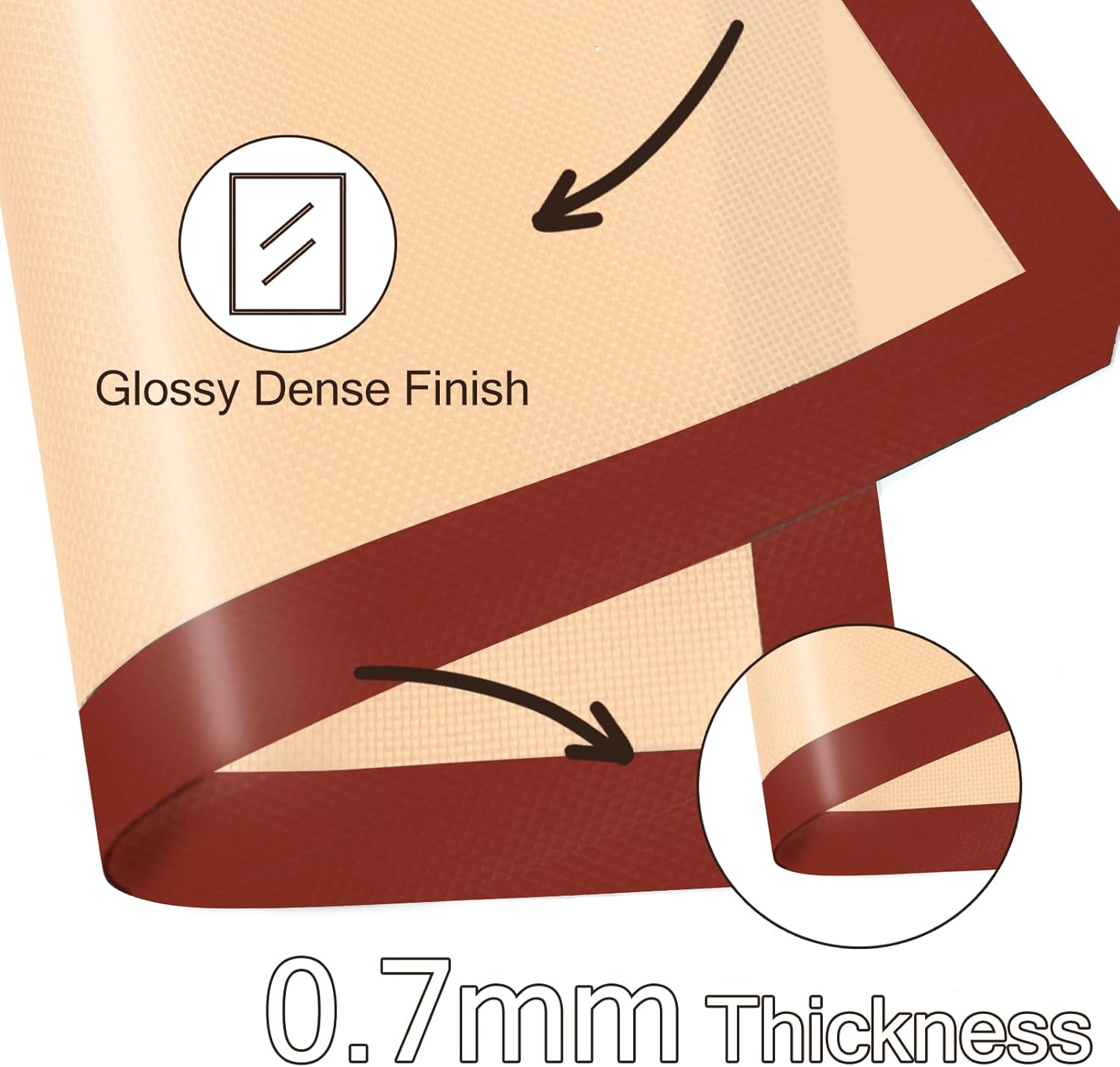 - [ NONSTICK SURFACE ] There is no need to grease the silicone baking sheet when using it, and even the dough is less likely to stick to the silicone baking sheets for oven. Each baking mat is 0.03 inches thick, double thickness for durability.