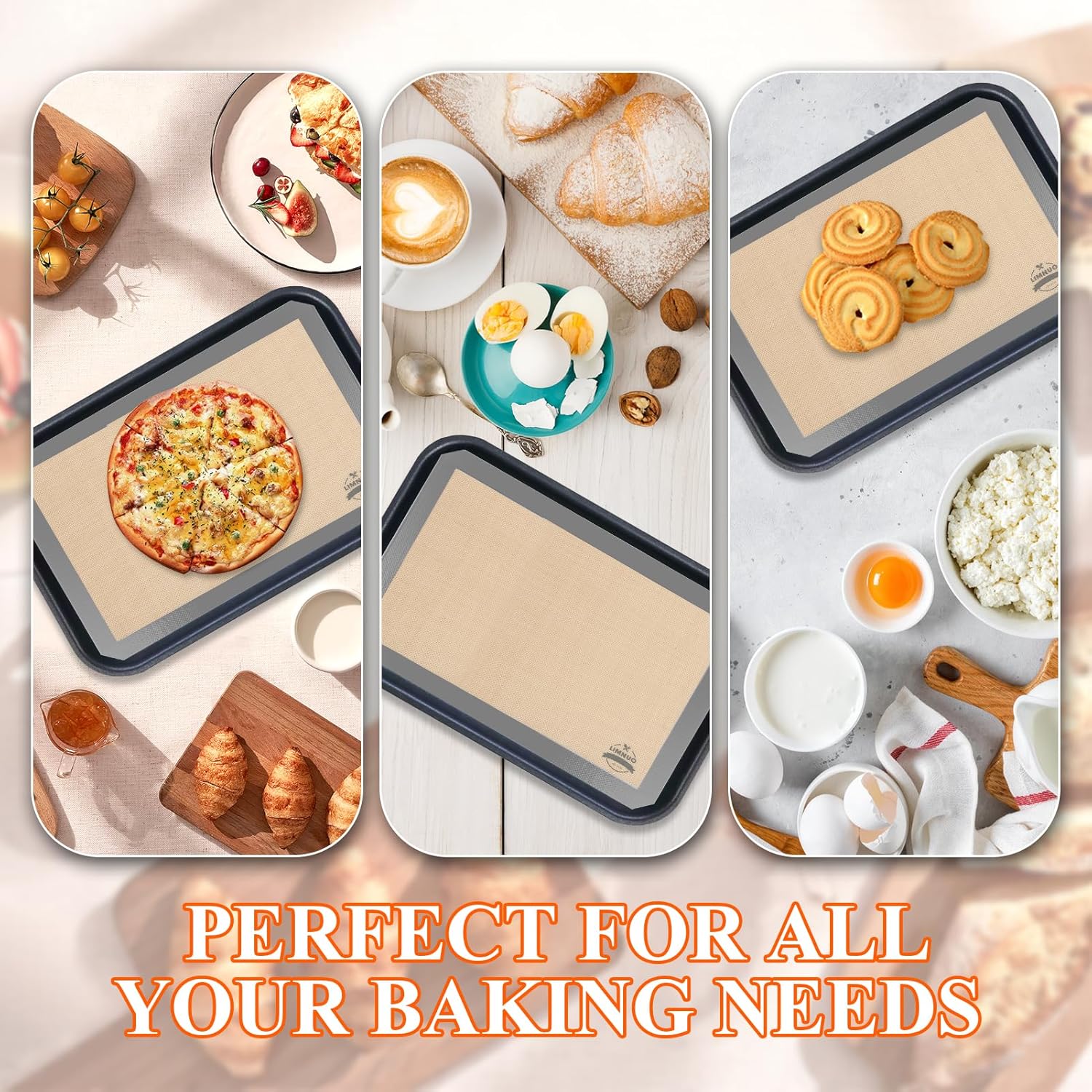 - Versatile. This set includes 2 large baking mats (16.51 x 11.61 inches) and 1 small baking mat (11.81 x 8.27 inches). The silicone baking mats are suitable for making a variety of foods such as bread, cookies, macarons, and pastries, meeting all your baking needs!