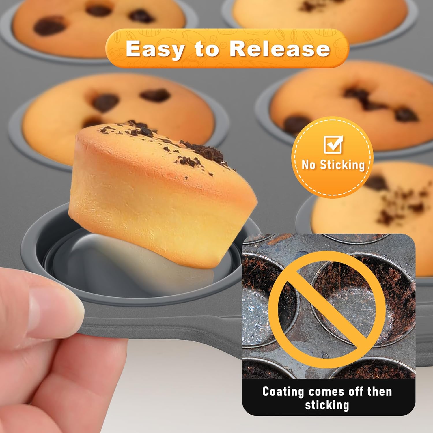 - 【Food-grade Material】The Muffin Pans don’t need liners and Crafted from 100% food-grade silicone,no more paper liners to mess with. Our baking pan is BPA-free and our silicone muffin pan is safe to use in the oven, microwave, dishwasher, refrigerator and freezer. With a high heat resistance range of -40℉ to 440℉, it can easily withstand various baking needs. It's a healthier and more robust alternative to traditional metal pans