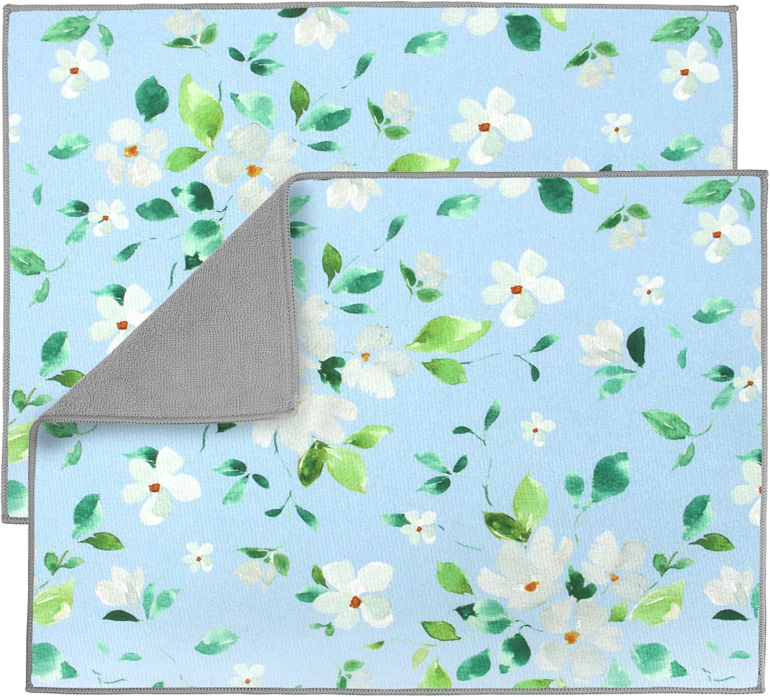 2 Pack Jasmine Dish Drying Mats For Kitchen Counter, Floral Print Dish Drying Mat - 20x15 inches, Absorbent Kitchen Counter Drying Mat, Dish Mat, Fast Drying