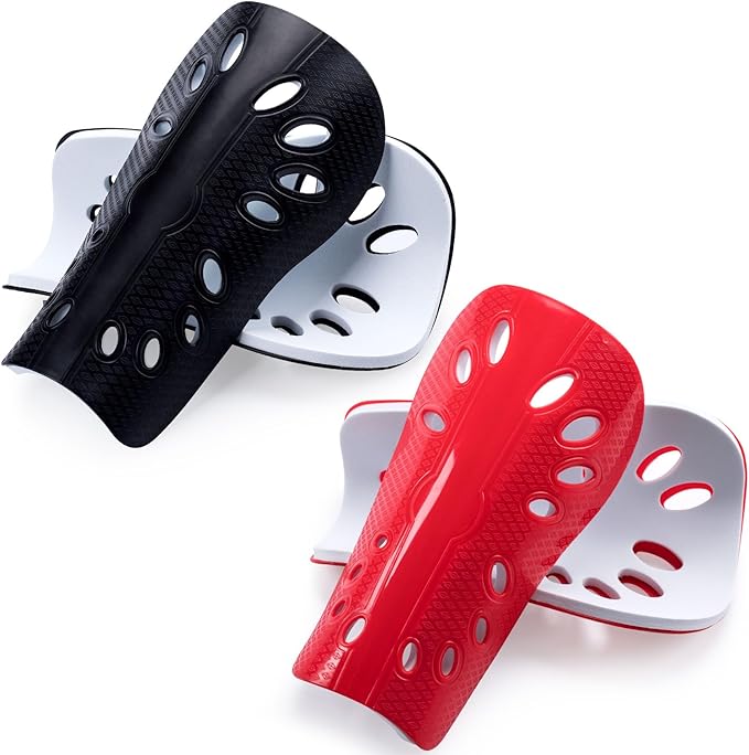 • BREATHABLE & LIGHTWEIGHT: This protective shin guard aims to give you great experience of wear. The football shin guard is very lightweight without any bad effects in running and speed. Special holes design gives you great breathability and not much pressure on your legs.
