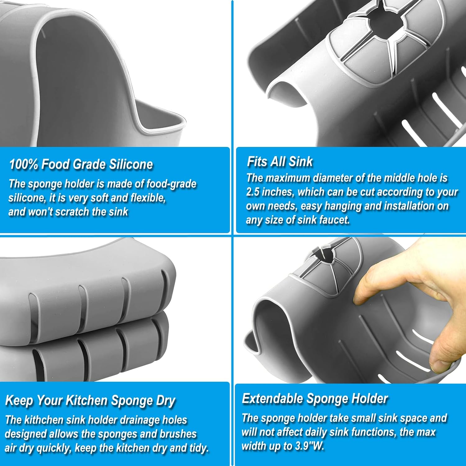 Sponge Holder for Kitchen Sink, Silicone Sink Saddle Caddy Organizer Rack, Sponges Holder Over Faucet, Hanging Kitchen Organizer Accessories Rack Basket Gray