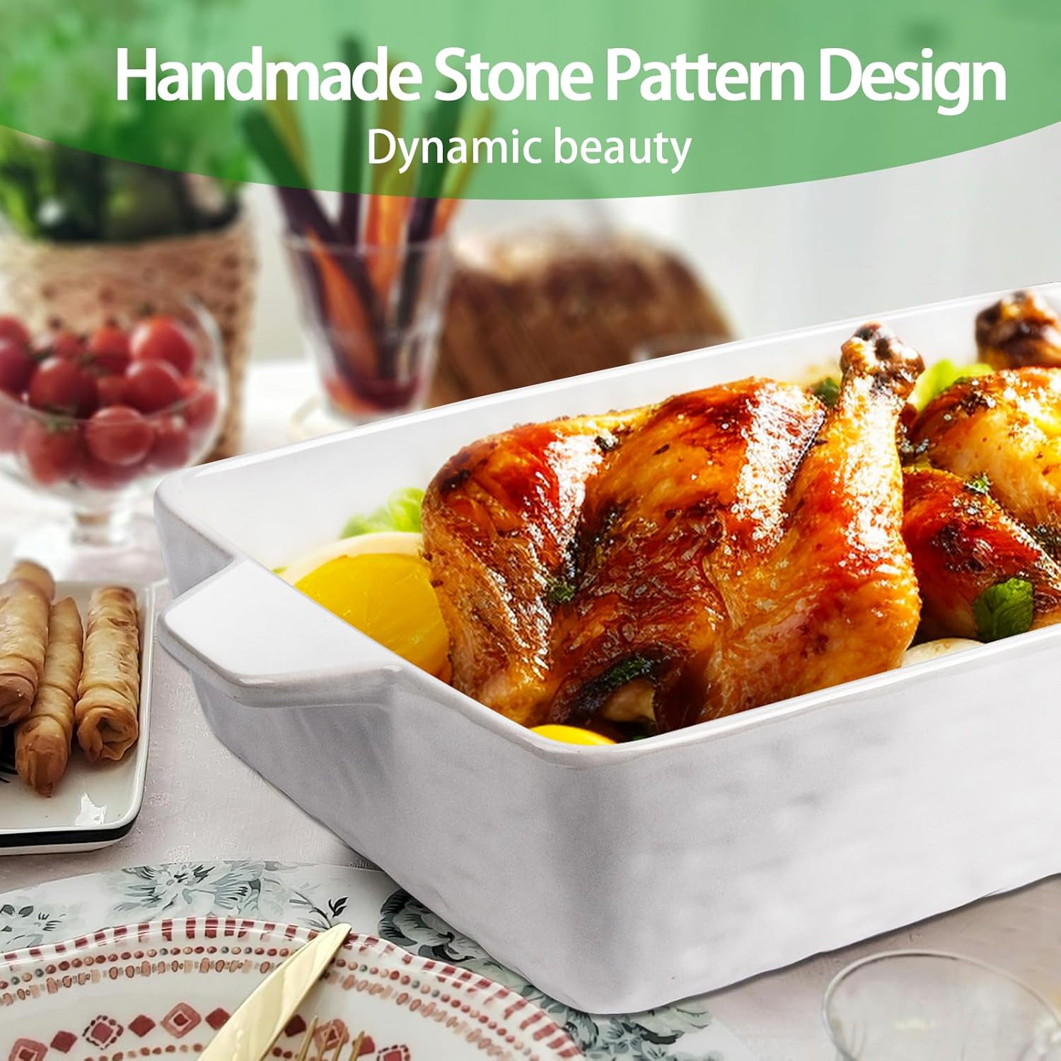 4 QT Baking Dish, Casserole Dishes for Oven, 9x13 Baking Pan with Handles, Lasagna Pan Deep, Ceramic Casserole Dish Oven Safe for Baking, Lasagna, Kitchen, Wedding Gift (White)