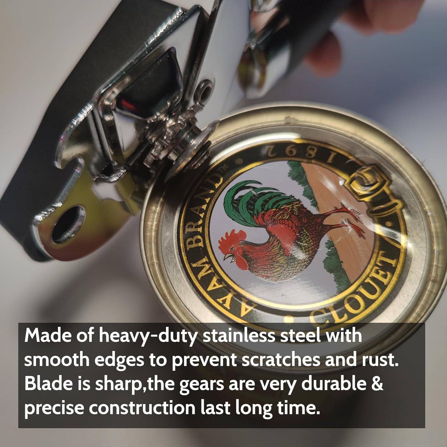 - Smoothest Cut: The upgraded can opener uses a stainless steel and high-carbon steel blade instead of the ordinary steel or regular blade and features a durable and sturdy precision gear.Smooth edge after cutting safe your family. Ergonomic design,soft, non-slip handles provide a comfortable grip for easy turning.It’s made of stainless steel can opener,also known as small can opener,safety can opener smooth edge,rust proof manual can opener.