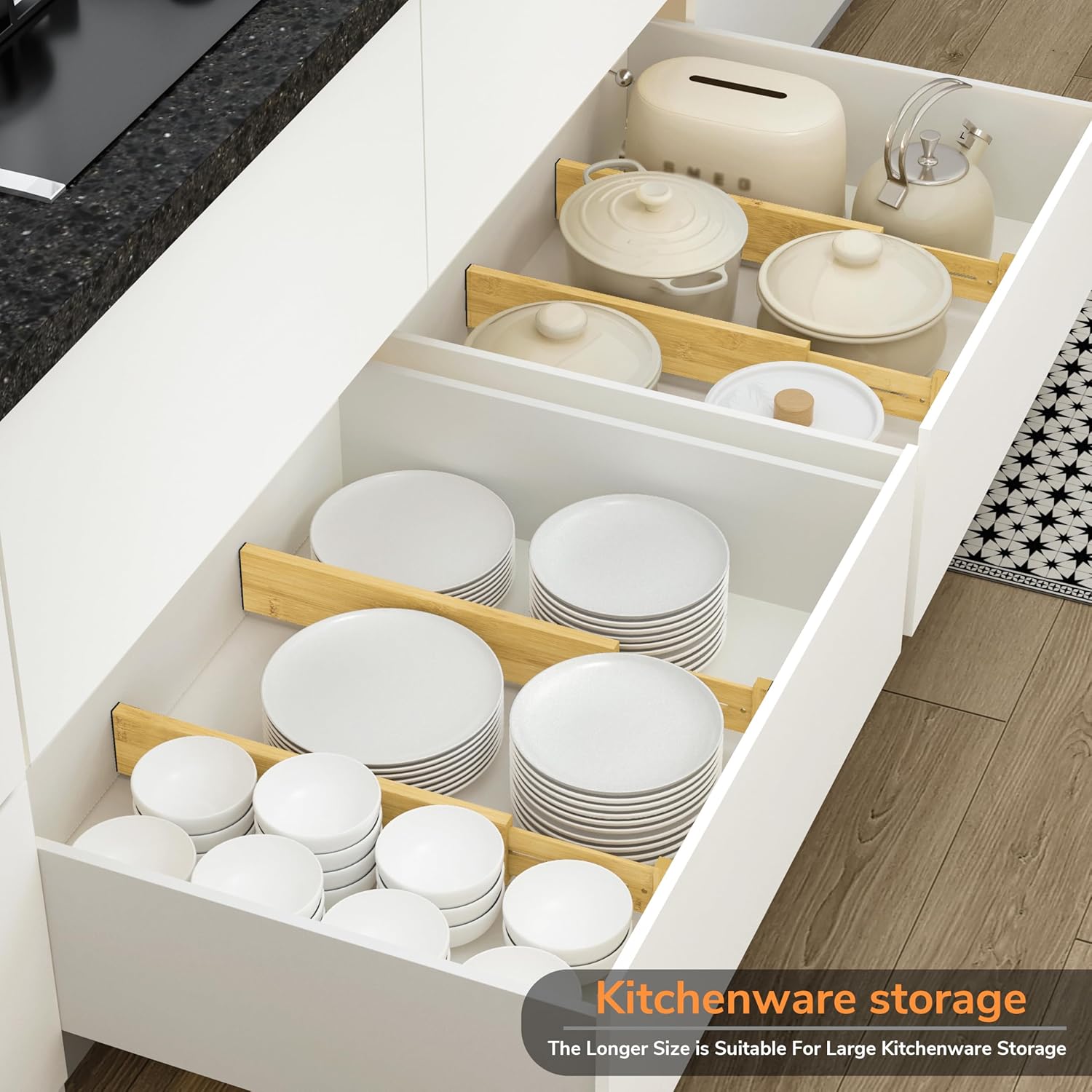 - Expandable design: Each deep drawer divider is 3" H, 0.6"W, and 16.65" to 22.2"L, which can be adjusted according to the size of the drawer, adapting to different furniture needs