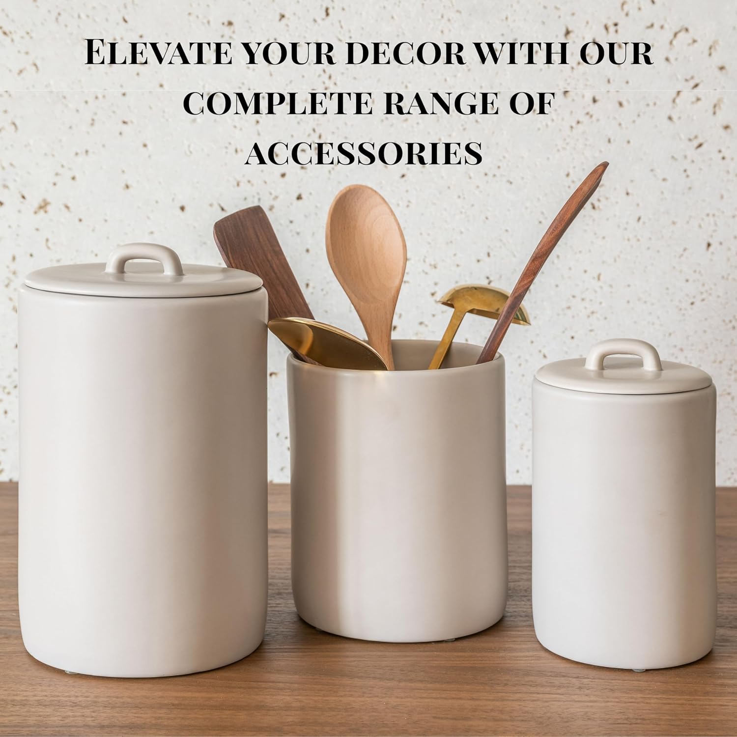 - ✅ PREMIUM CERAMIC WITH MATTE SMOOTH FINISH : Crafted from durable high-quality ceramic with a soft taupe color and smooth matte finished for a neutral and refined look. Ideal for kitchen organization