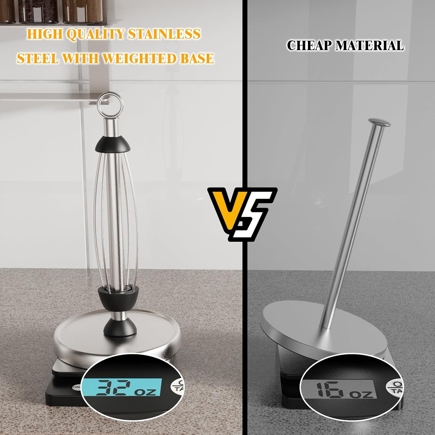 HZE Paper Towel Holder Countertop, One-Handed Tear, Stainless Steel, Weighted Base, Silver, Ring Paper Towel Holder Stand with Ratchet System for Kitchen Farmhouse Essentials Decor Accessories