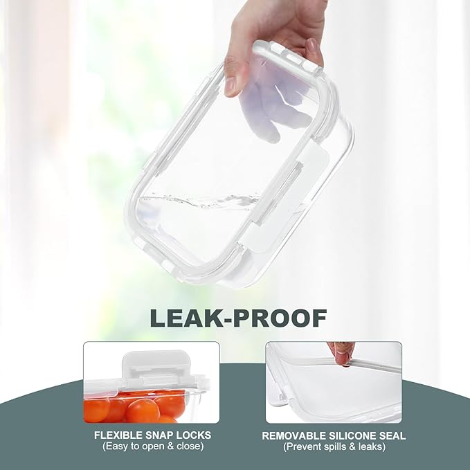 • Premium Quality Glass: Our glass meal prep containers are made from high-quality glass that is safe to use in the microwave, oven, freezer, and dishwasher. You can freeze or reheat your meals easily, ideal for everyday use. Please take off the lids when cooking and heating food.