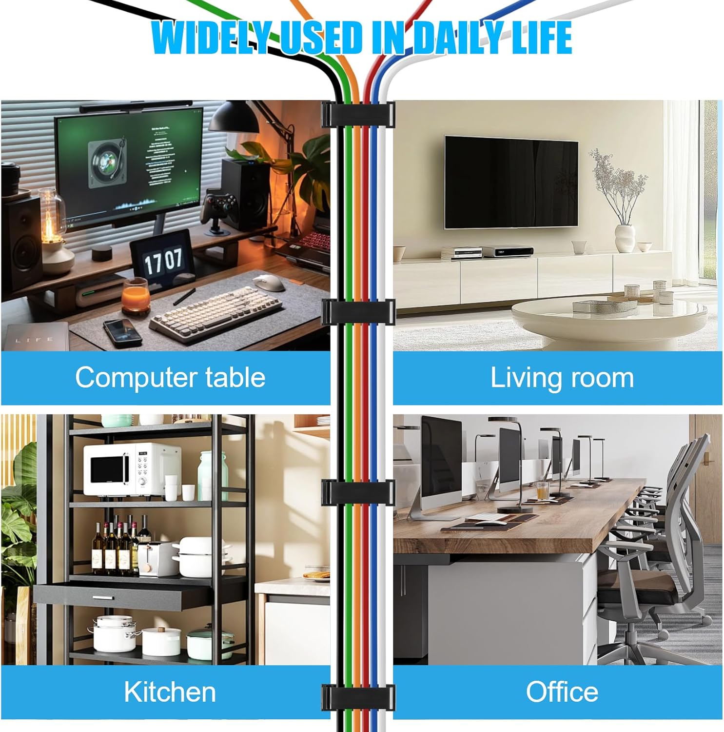 XHF 40 PCS Self Adhesive Cable Clips(XL) Black,Wire Clips Cable Management Wire Organizer Cord Holder for Under Desk, Car, Wall, TV PC Ethernet Cable
