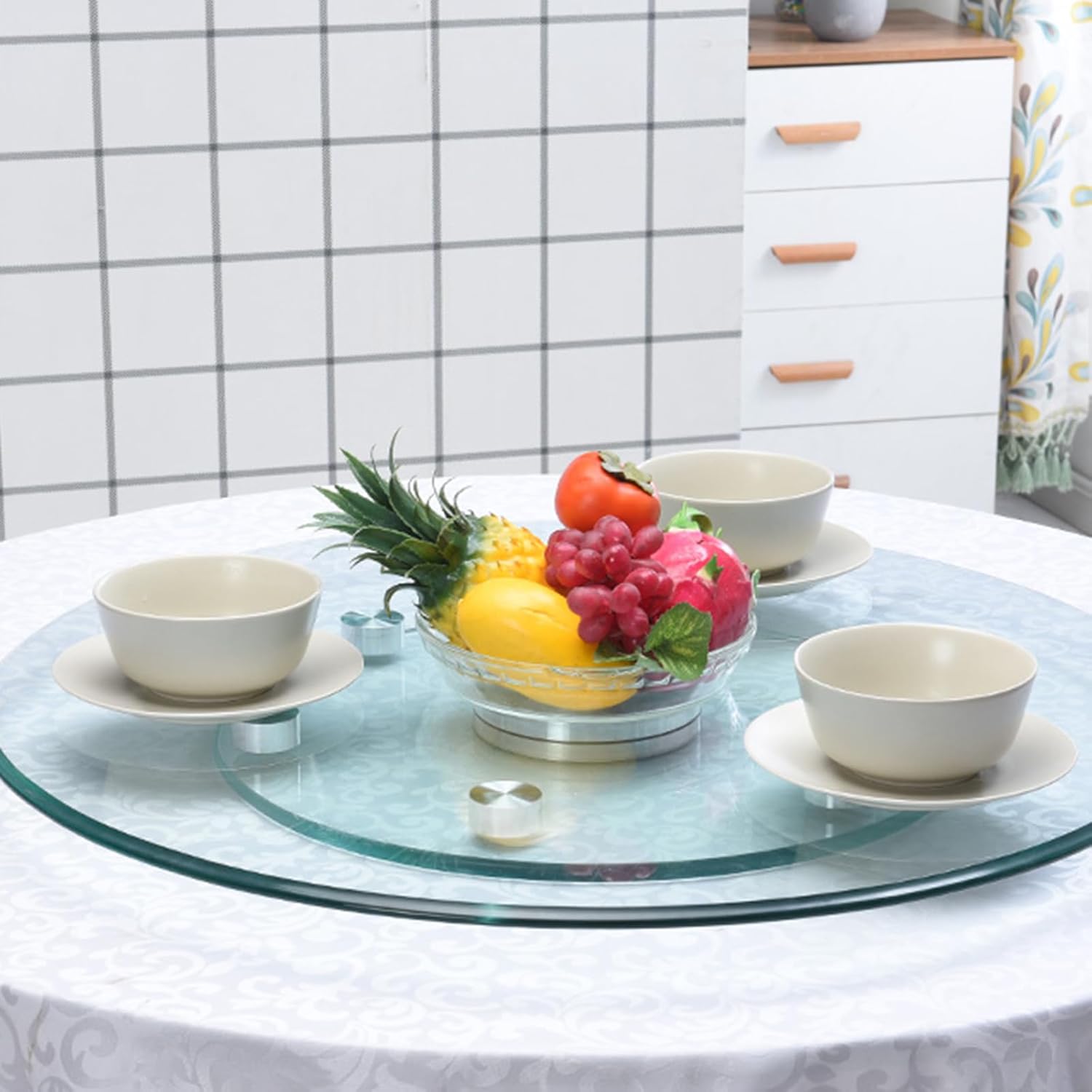 - 【Tempered Glass Construction】Glass Lazy Susan Crafted from high-strength, heat-resistant tempered glass, this is unbreakable, scratch-resistant, and incredibly easy to clean. Carefully polished edges ensure safety for everyday handling