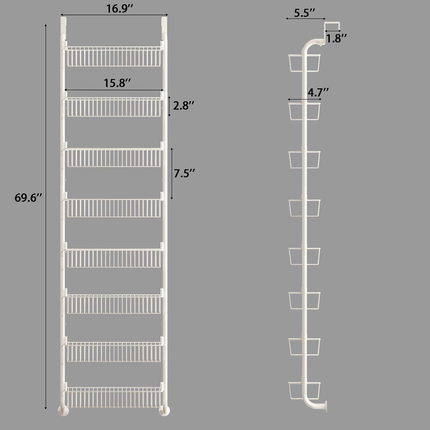 - 【LARGE CAPACITY】Overall Dimensions: 16.9"W x 5.5"D x 69.6"H. Each basket size: 15.8"W x 4.7"D x 2.8"H. It can place a large number of seasoning jars, snacks, snacks, etc, making the space more tidy. (Please measure the door frame size before purchasing, door thickness<1.8", door gap >0.08")