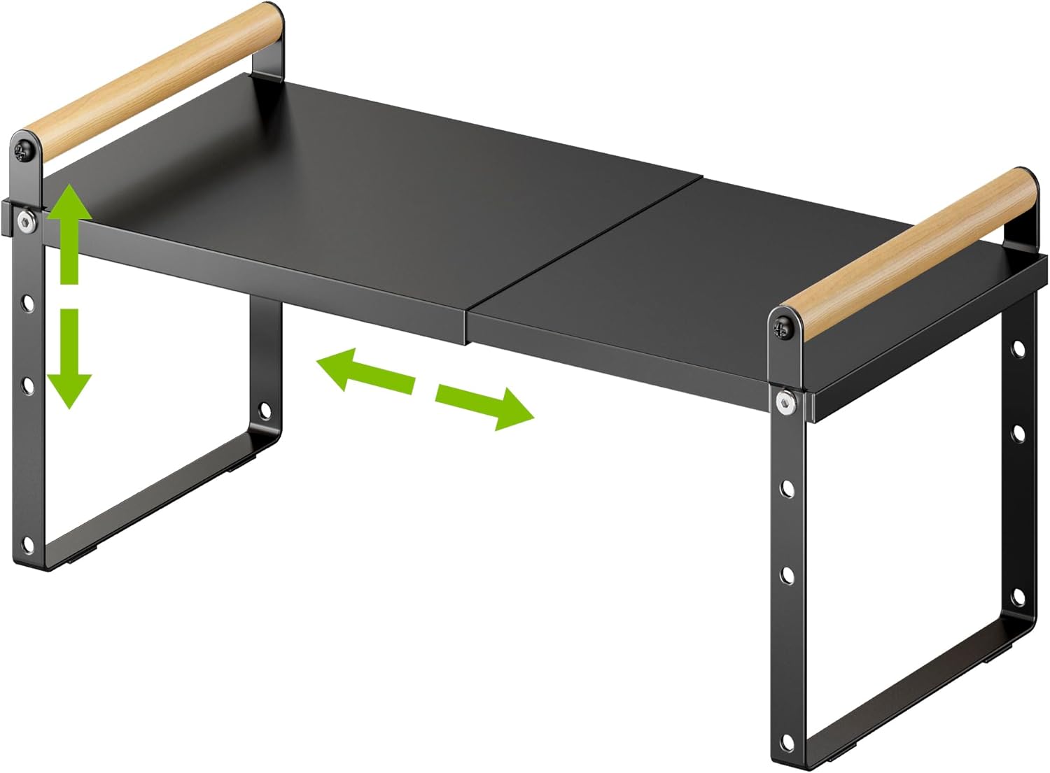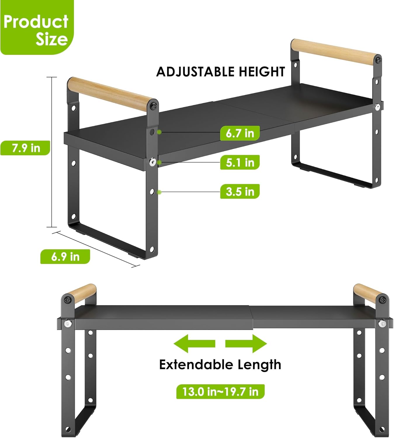 DOLALIKE Expandable kitchen Countertop Organizer, Stackable Cabinet Shelf Organizers, Space Saving Spice Rack Pantry Storage for Bathroom Office Organization (6.9''D*13-19.7''W*7.9''H, Black)