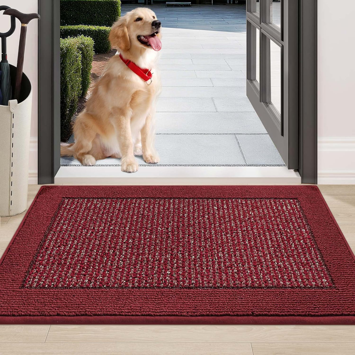 BEQHAUSE Indoor Door Mat 24" x 36", Dirt Trapper Door Mats Non-Slip Entryway Rugs Washable, Resist Dirt Absorbent Welcome Mat, Low Profile Floor Mats for Front Back Door and Entryway, Red