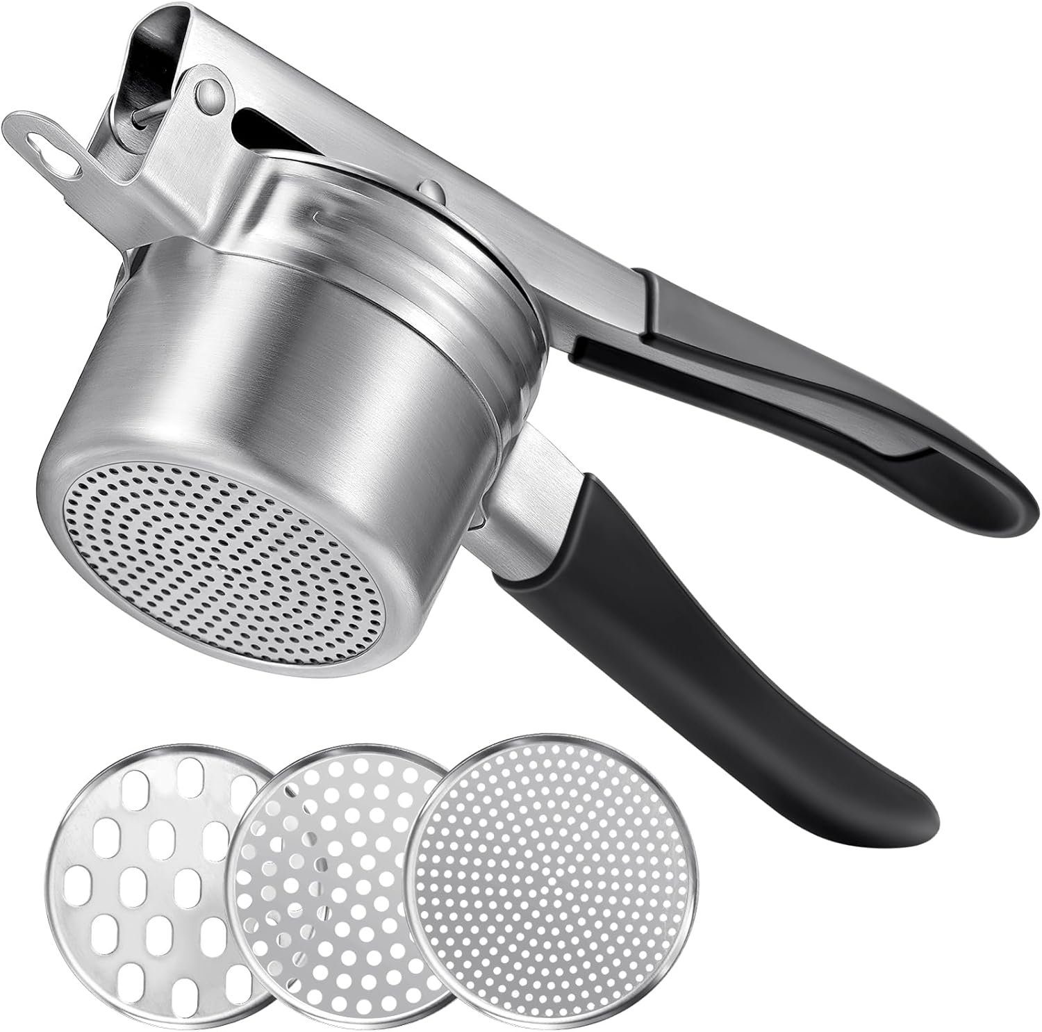 Potato Ricer, Sopito Upgraded Stainless Steel Potato Masher with 3 Interchangeable Discs, Heavy Duty Kitchen Tool Gadget