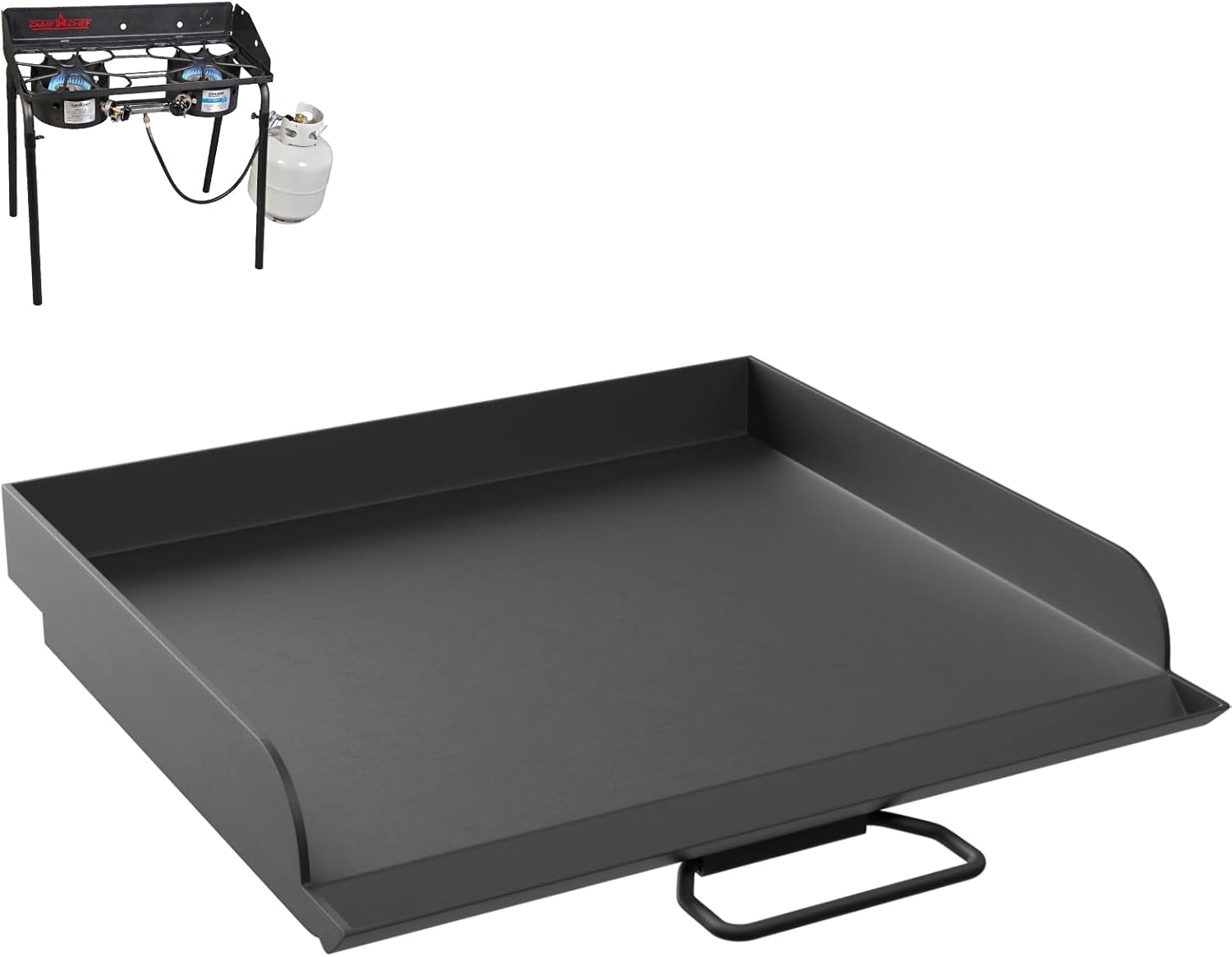- Excellent material: Made of high-quality metal to ensure long-lasting use, can withstand high temperatures, non-stick surfaces are easier to clean, designed for camp Chef explorer 2 burner propane stove and explorer 3X 3-burner stove,Great for camp chef expedition 2X Double Burner Stove